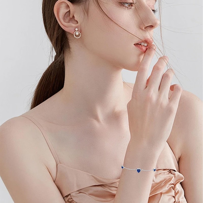 Sterling Silver Blue September Birthstone Bracelet for Women Teen, Birthday Anniversary Valentine's Day Heart Gift Jewelry for Sister Daughter Friends (Bracelet, With September Birthstone)