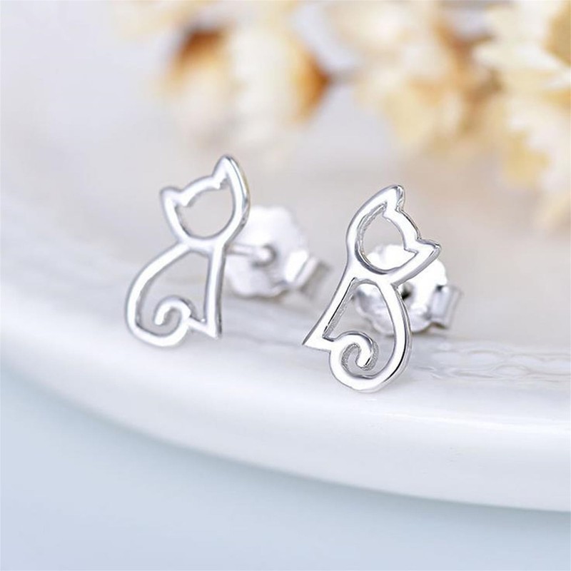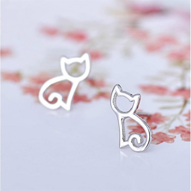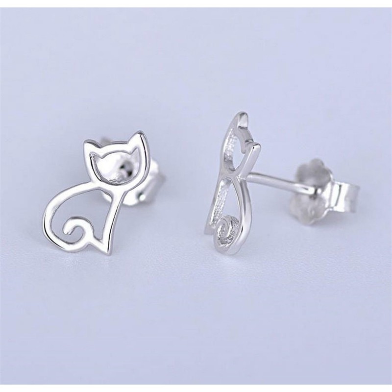 - Sterling Silver Hollow Out Cat Kitten Kitty Animal Post Stud Earrings Boxed