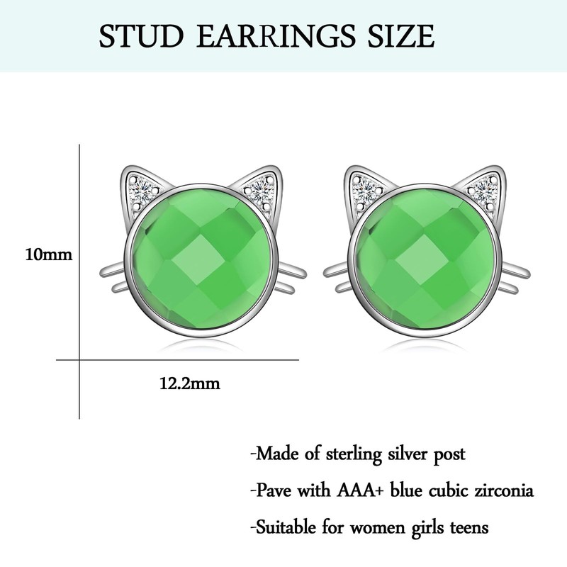 - ✨Cute Cat Stud Earrings✨ This cute sterling silver stud earrings inspired from cat face, with brilliant green AAA+ cubic zirconia, sparkling and sustainable can add extra shine to your daily outfits. Cute and stylish desgin makes you more beautiful and attractic.