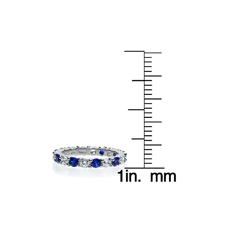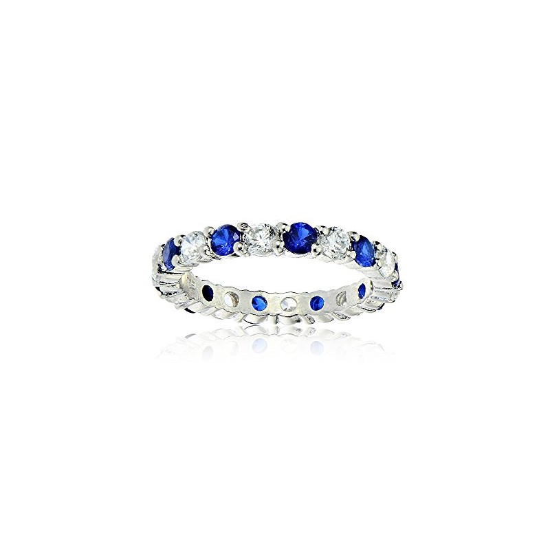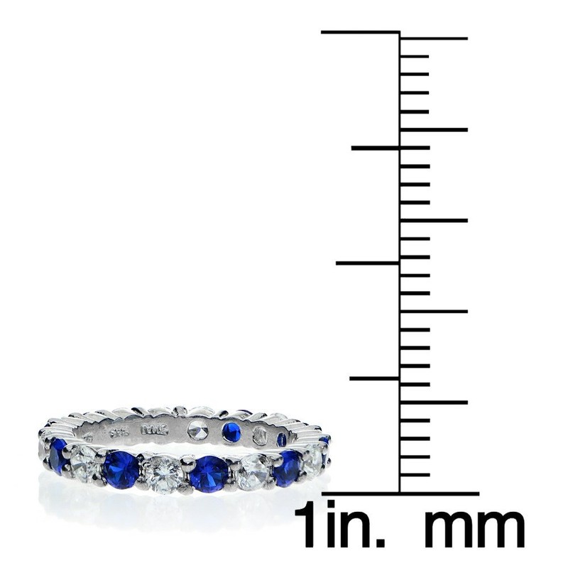 Sterling Silver Created Blue Sapphire and Cubic Zirconia Wedding Band Ring, 7