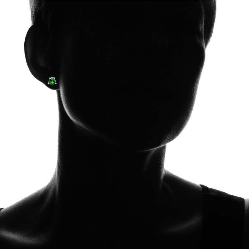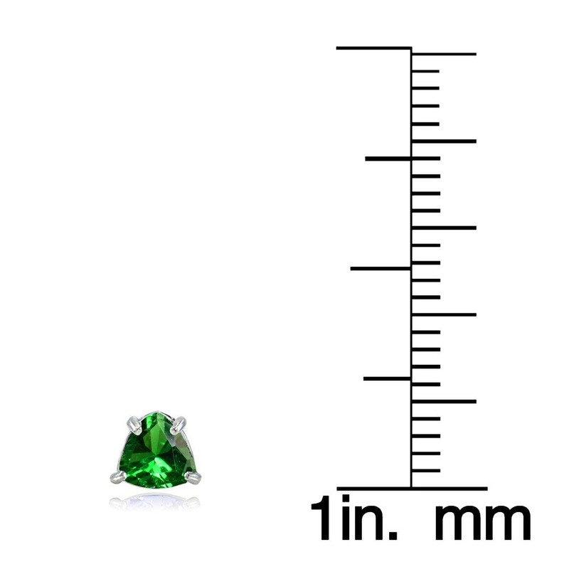 - Sterling silver stud earrings showcase created green emerald trillion-cut gemstone studs.