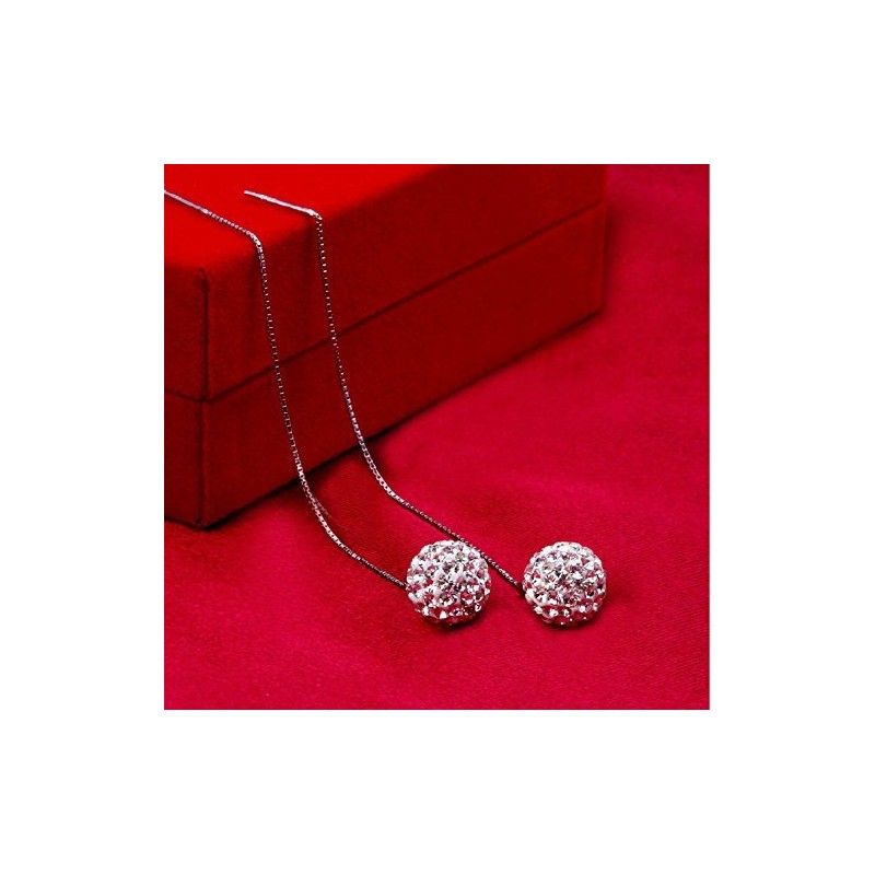 Sterling Silver Crystal Ball Beads Tassel Ear Stud Threader Drop Dangle Linear Earrings Party Bridal Jewellery