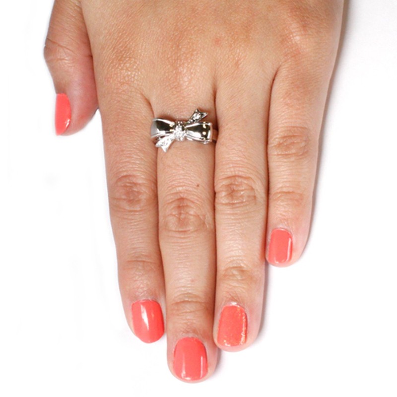 - Sterling Silver Cubic Zirconia Infinity Bow Ring - Size Q 1/2