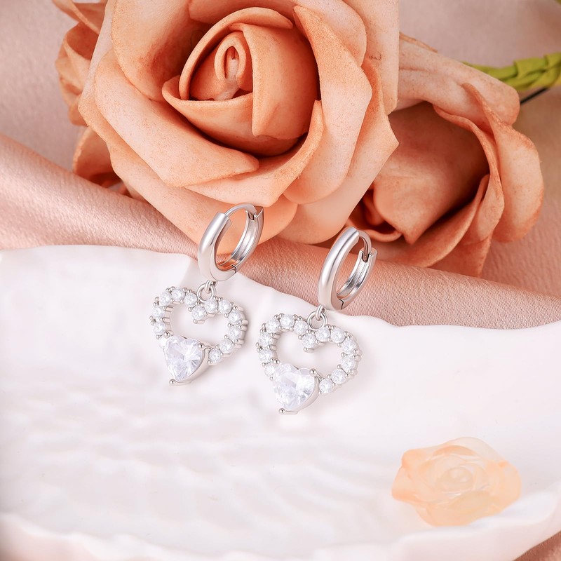 - ✦ Fashion Cubic Zirconia Dangle Earrings ✦ AAA-quality cubic zirconia with meticulous love heart cut with huggie hoop, displays high brilliance and a vibrant sparkle. Nothing beats the versatility of classic dangle hoop earrings, you don’t need fancy clothes, you only need a pair of this stylish jewelry.