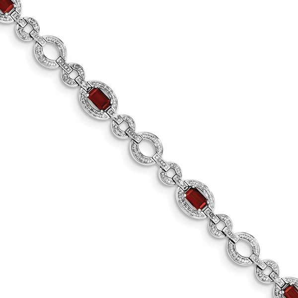 Sterling Silver Diamond & Garnet Oval Link Bracelet
