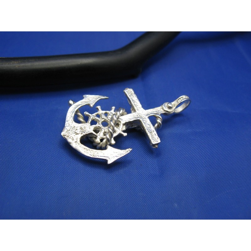 Sterling Silver Diver's Mariners Cross Pendant of Jesus on Anchor Wrapped in Rope