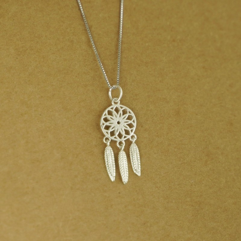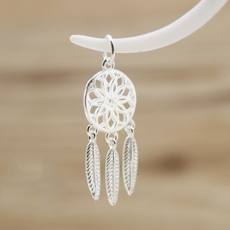 Sterling Silver Dream Catcher Circle Disc Angel Wing Feather Drop Charm Pendant