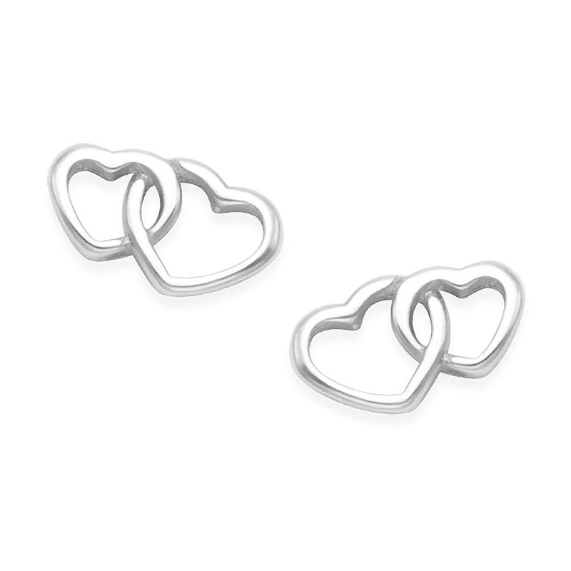 Sterling Silver Heart Earrings - Double open heart Stud Earrings - SIZE: 5mm (1/5TH INCH). Gift boxed. MUCH SMALLER THAN SHOWN - see second photo.. 5020