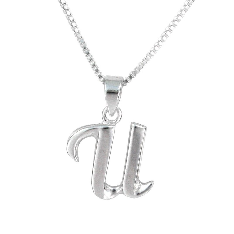 Sterling Silver Initial Charm Necklace, Letter U, 16" Chain