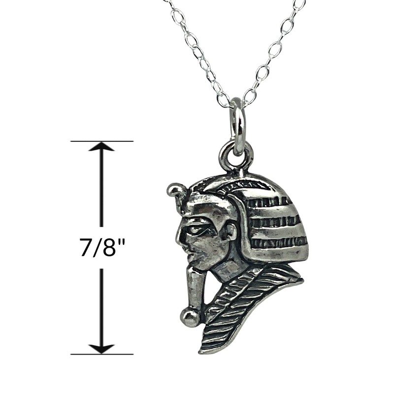 Sterling Silver King Tut Pharaoh Egypt 3D Charm Necklace, 18"
