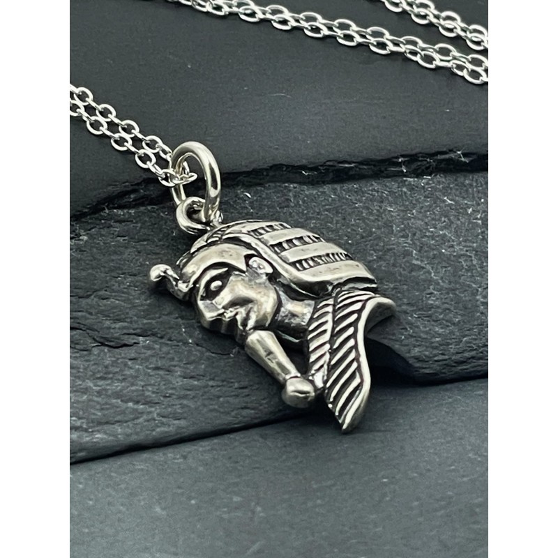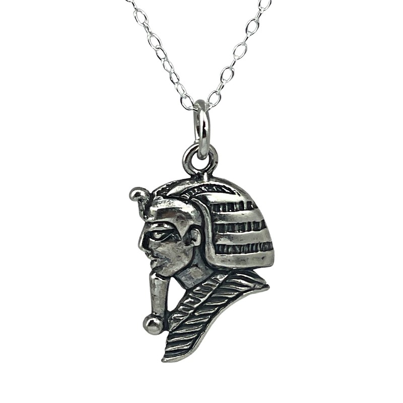 Sterling Silver King Tut Pharaoh Egypt 3D Charm Necklace, 18"