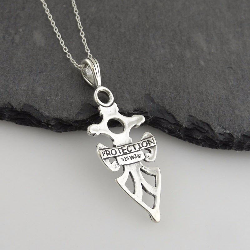 Sterling Silver Lining Spear Protection Amulet Pendant Necklace, 18" Chain, Sterling Silver, No information