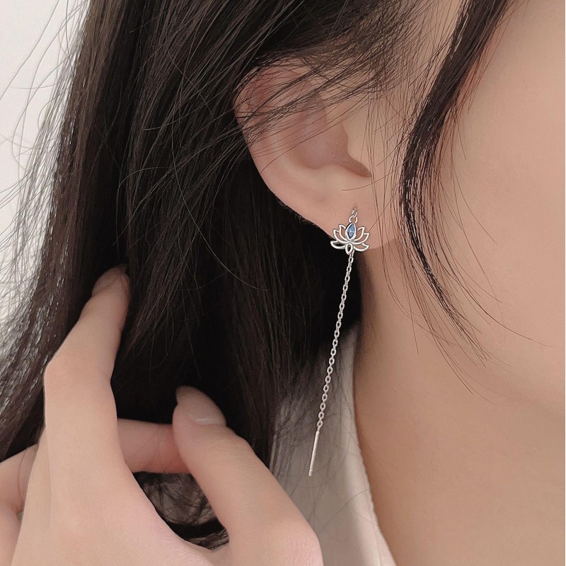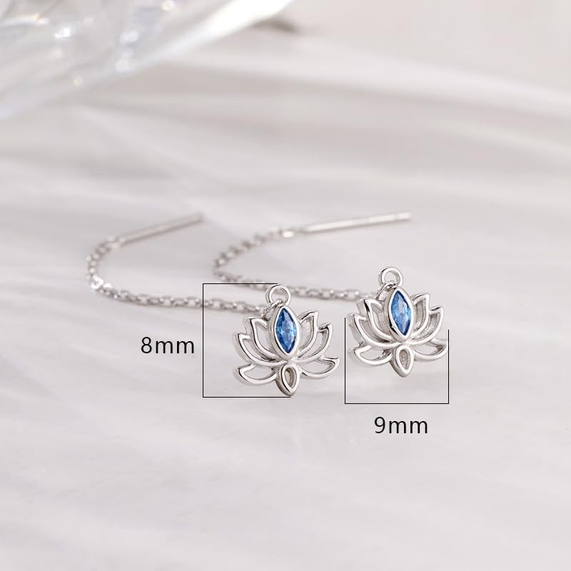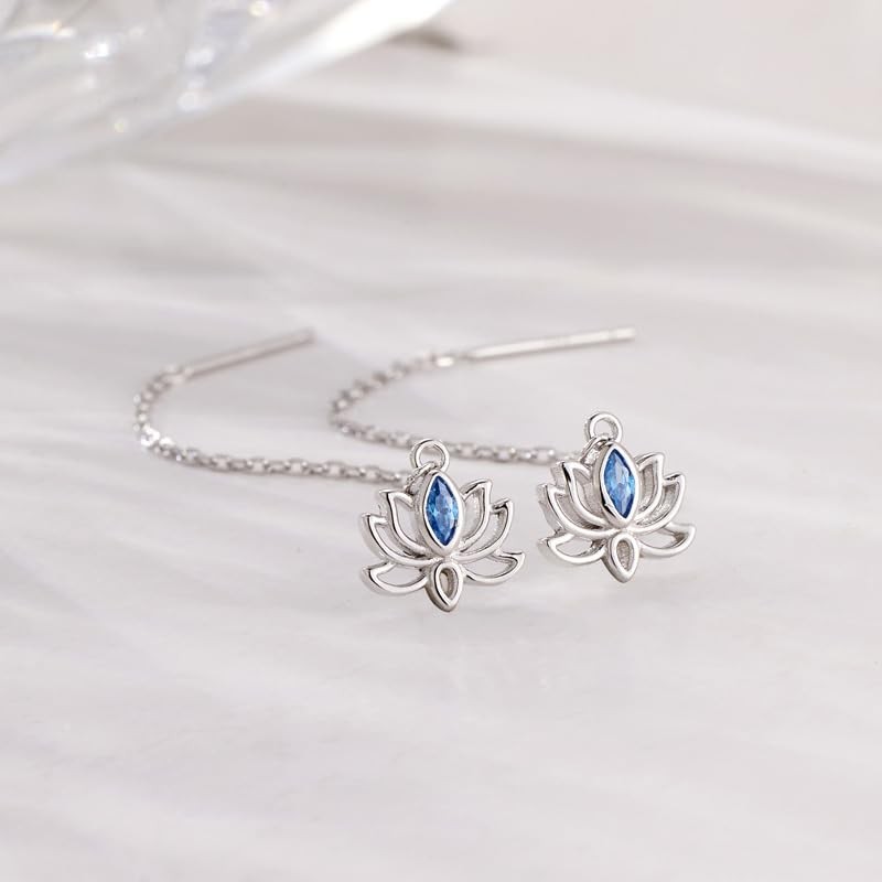 • DESIGN: Elegant lotus flower threader earrings crafted from genuine S925 sterling silver with delicate chain design