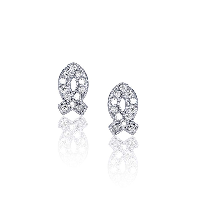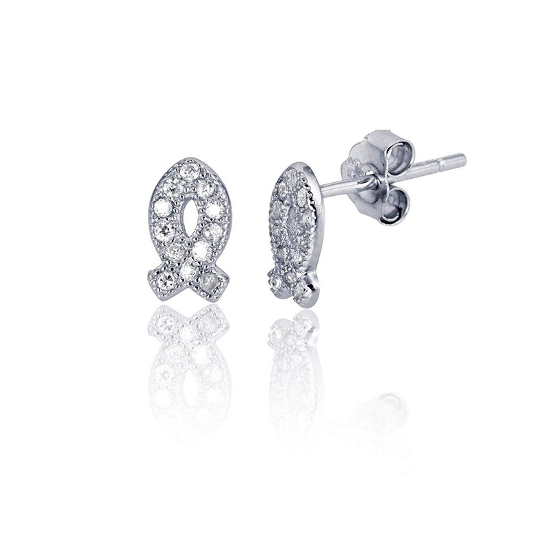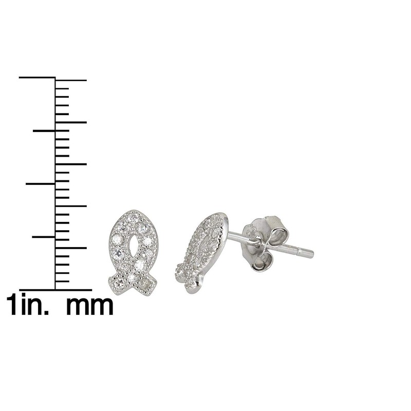 • Cubic-Zirconia: This Sterling Silver Rhodium 7.4x4.3mm Micropave Petit Jesus Fish Stud Earrings features 24 gemstones with a total carat weight of 0.22 CTW.