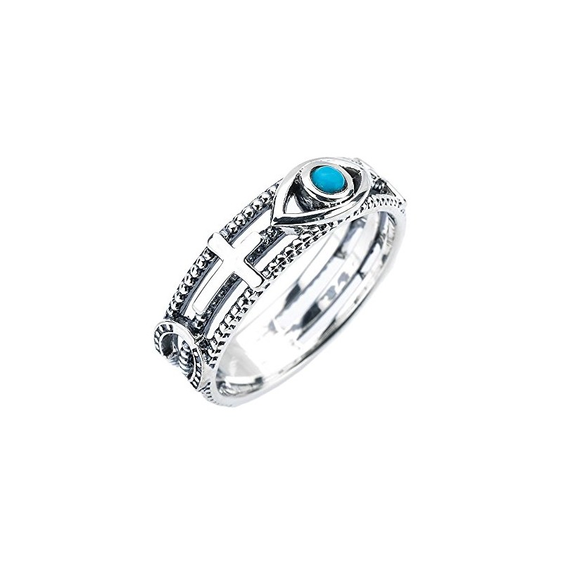 - ✅ Sterling Silver Milgrain Sideways Cross Blue Evil Eye Good Luck Ring
