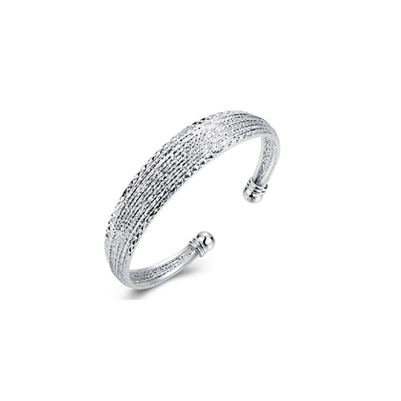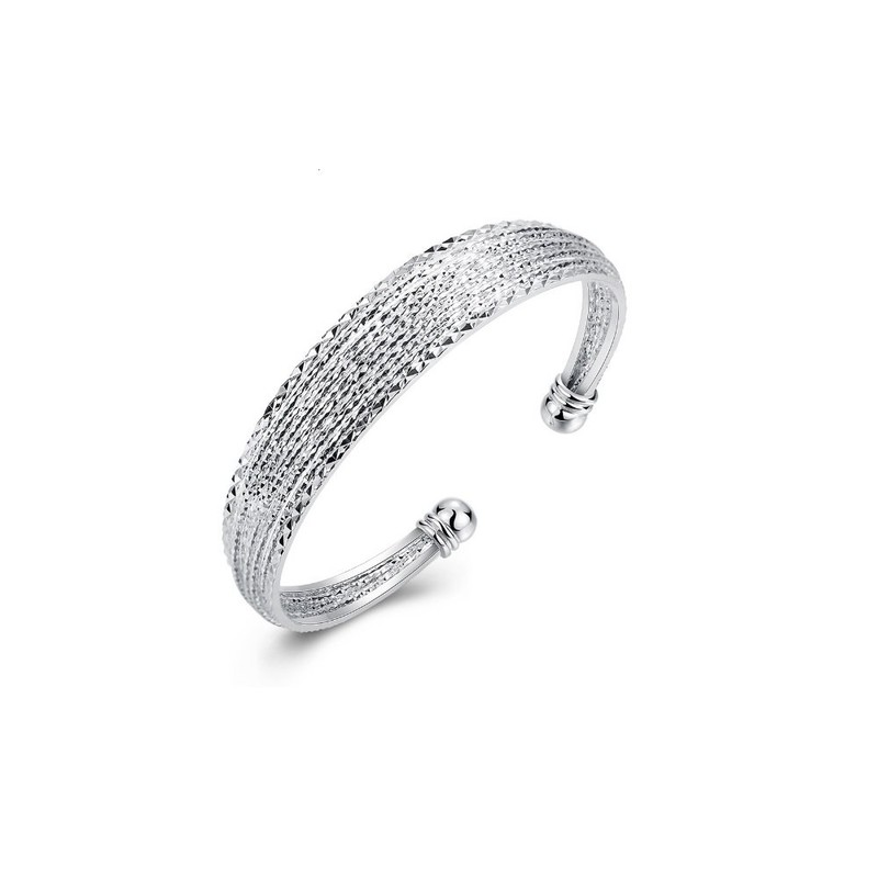 Sterling Silver Multi Line Diamond Cut Bangle Bracelet