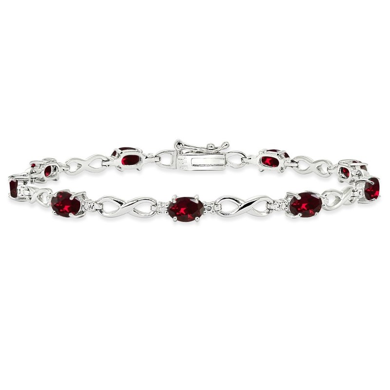 • FEATURE - Wear this stylish tennis bracelet to enhance your daytime and evening attire. This stunning bracelet features 6x4mm oval prong-set synthetic ruby stones between polished infinity symbols that is perfect for evening wear and statement pieces.