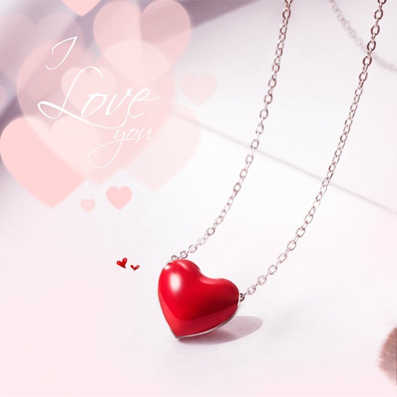Sterling Silver Pendants Forever Lover Enamel Heart Pendant Necklace 16"(Extend 5cm)