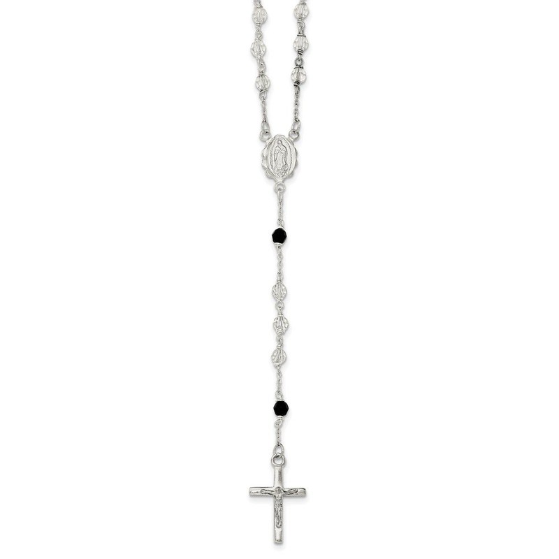 - Sterling Silver Polished and Black Crystal Bead Rosary 23.5 inch Necklace Is Made By Brilliant Jewelers With You In Mind or For That Special Someone