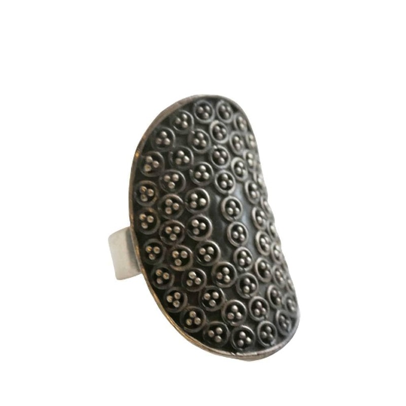 - Einzigartiges Boho-Design – Dieser handgefertigte Statement-Ring im Bohemian-Stil überzeugt mit seiner kunstvollen, strukturierten Oberfläche und verleiht jedem Look eine ausdrucksstarke, individuelle Note.