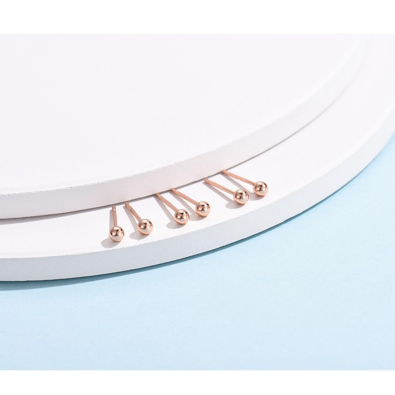 Sterling Silver Round Ball Stud Earrings for Women Men, 3 Pairs Hypoallergenic Small Tiny Rose Gold Stud Earring Set (Diameter 3mm)