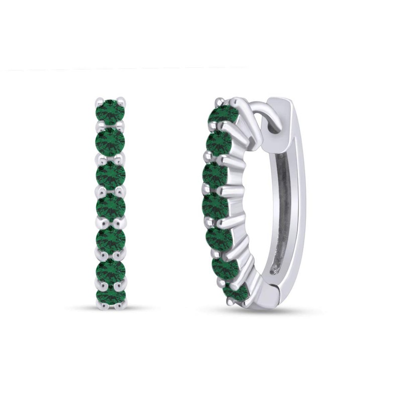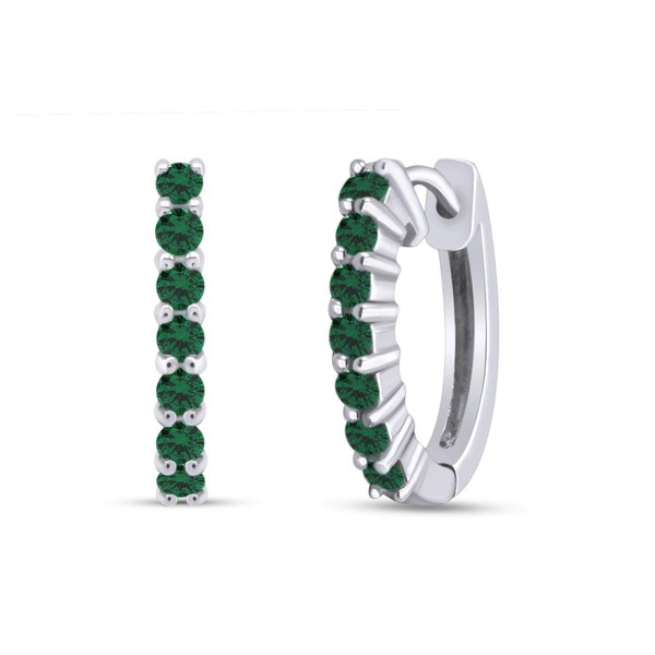 Sterling Silver Round Shape May Birthstone Green Emerald Hoop Earrings (0.64" Diameter, 0.7 Cttw