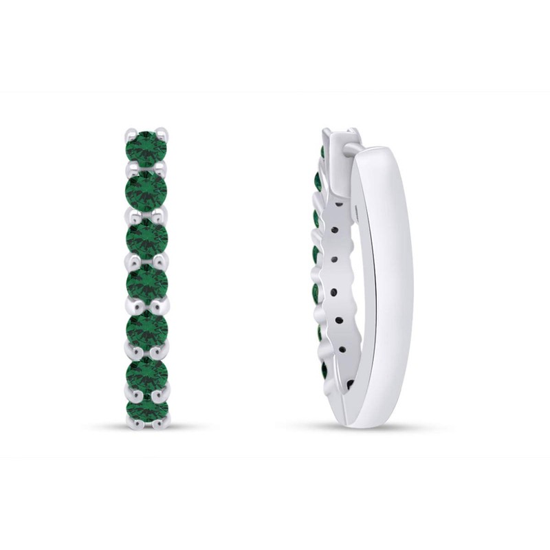 - Round Shape Simulated Emerald Hoop Earrings in 14k White Gold Over Sterling Silver with classic Prong Setting