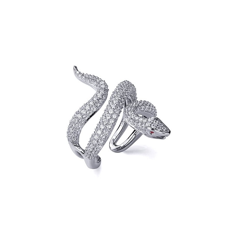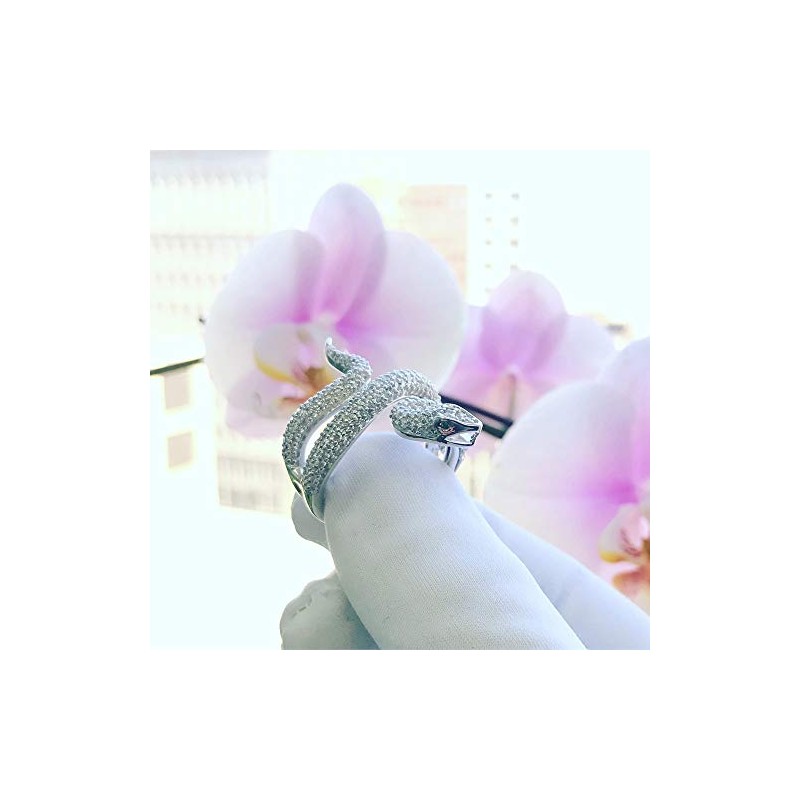 Sterling Silver Statement Ring Healing Protection Snake CZ Pave Adjustable Open Ring 34mm, 7