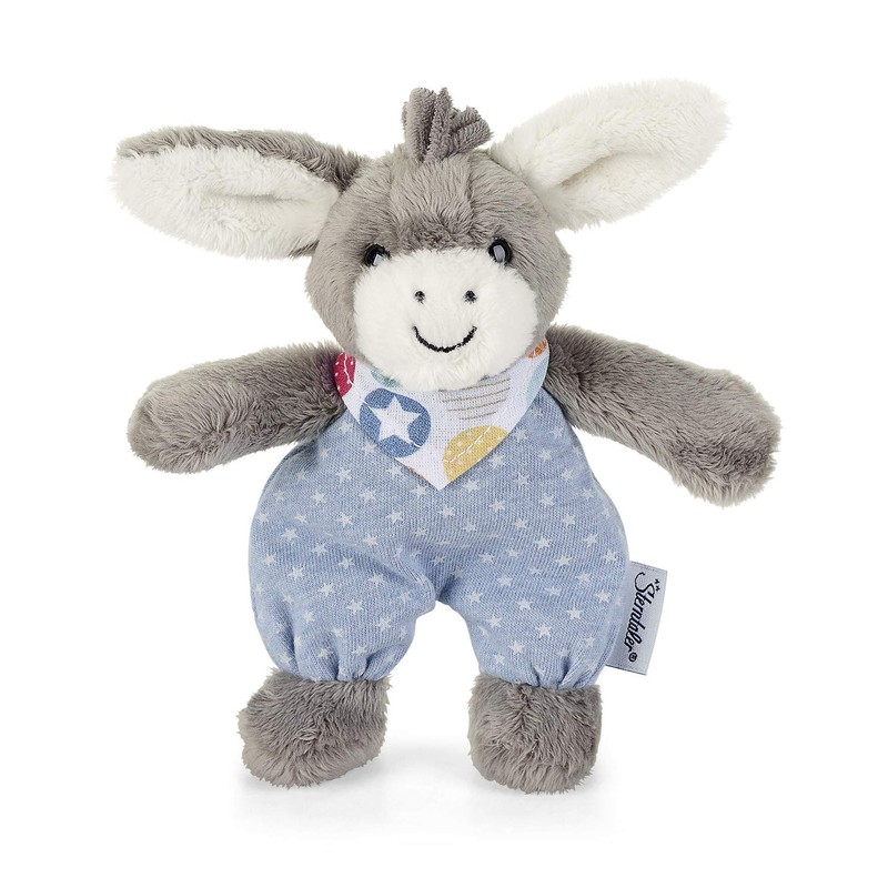 • Lieferumfang: 1 Sterntaler Mini-Spieltier Esel Emmi, Integrierte Rassel, Für Babys ab der Geburt, 17 cm, Grau/Hellblau