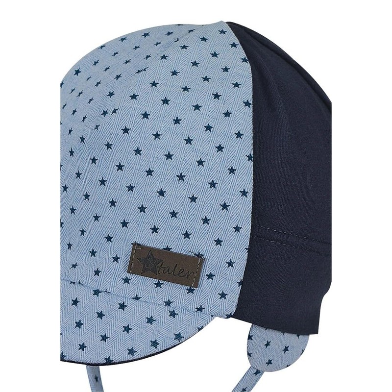 - Peaked cap made of cotton blend fabric with small stars and single jersey (organic), with ear flaps and tie band