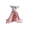 - Cuddle cloth for girls made of soft, floral muslin with donkey head and heart-shaped silicone teething ring and rattle