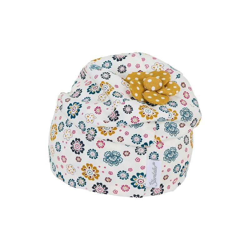- Box contents: 1 Sterntaler slouch beanie for girls with polka dot / flower pattern, age: 3-4 months, size: 39, colour: beige, item number: 1402162