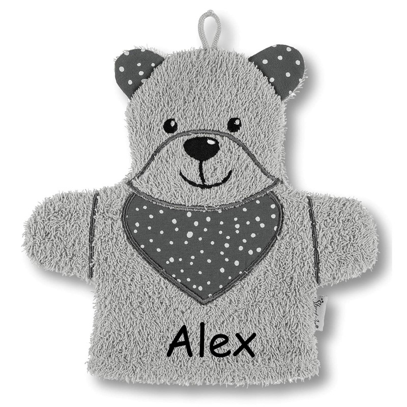 Sterntaler Play Wash Mitt Bear Baylee Embroidered with Name, Face Cloth for Children and Babies, 24 cm (Grey)
