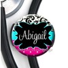 Stethoscope Tag - Damask Polka Dot Blue and Pink - Personalized Name - Steth ID Tag