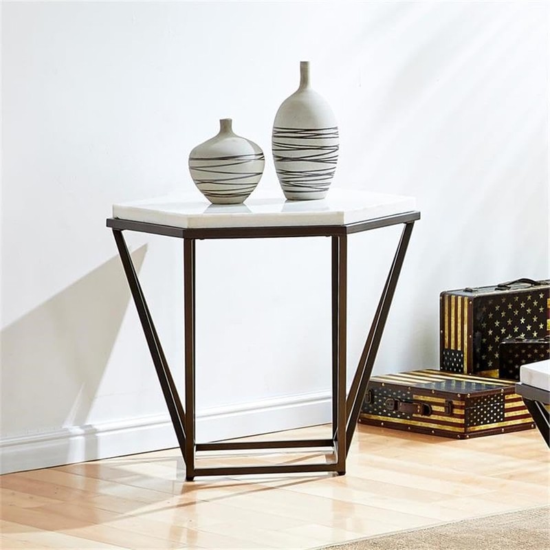 Steve Silver Corvus Genuine White Marble Top End Table