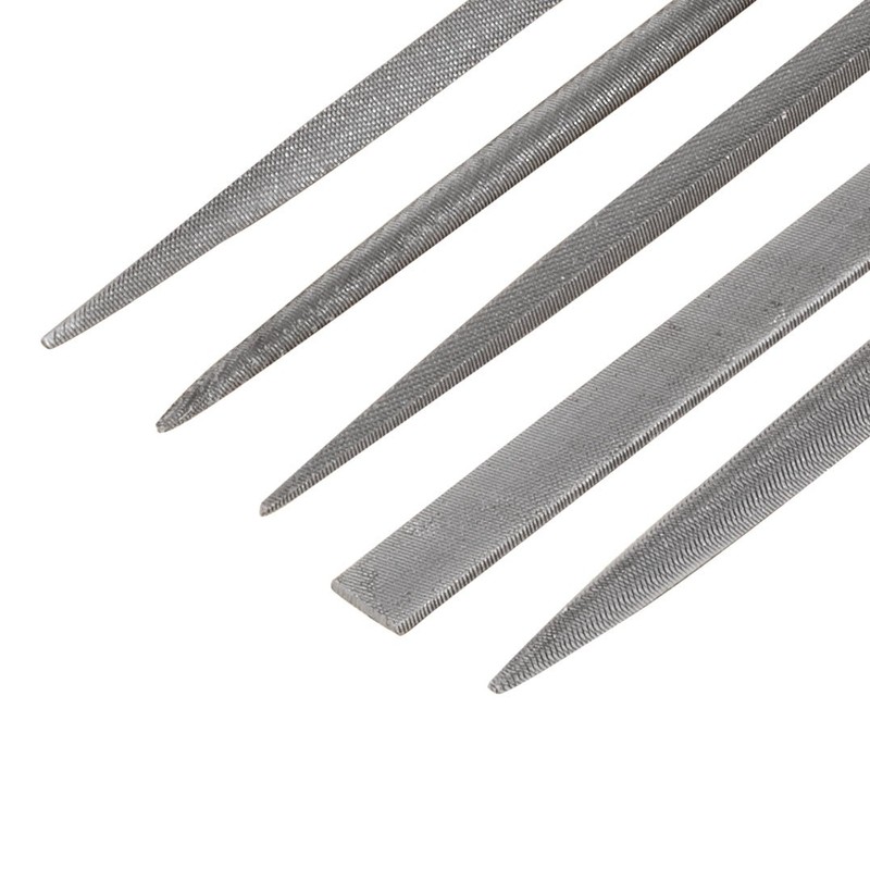 - Set includes the following shaped files: round, flat, square, half-round and triangle