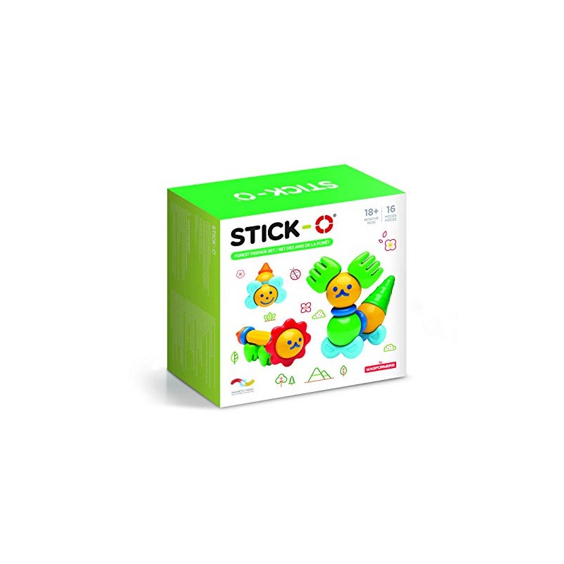 - The original and authentic Stick-O. From the Makers of Magformers. 16 magnetic building shapes. 3 Spheres, 3 Sticks, 2 Discs and magnetic accessories including bunny ears, flowers, cones, flower pots and elephant ears.