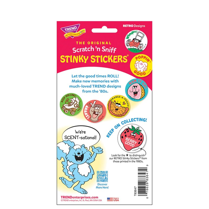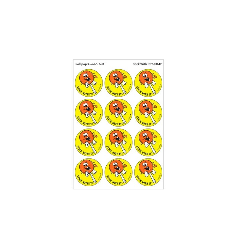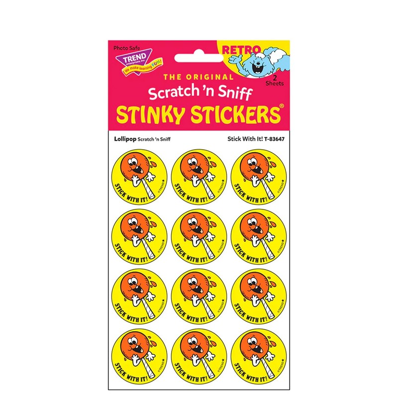 Stick with It!/Lollipop Scent Retro Scratch 'n Sniff Stinky Stickers by TREND; 24 Seals/Pack - Authentic 1980s Designs!