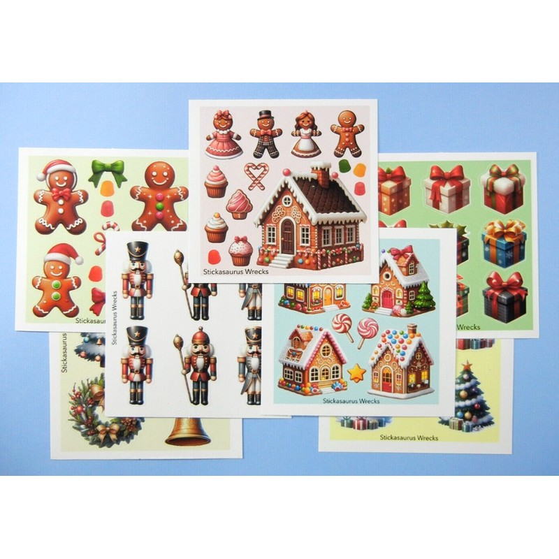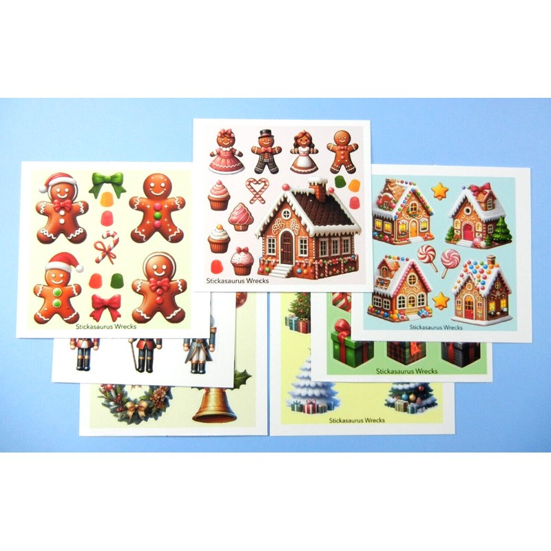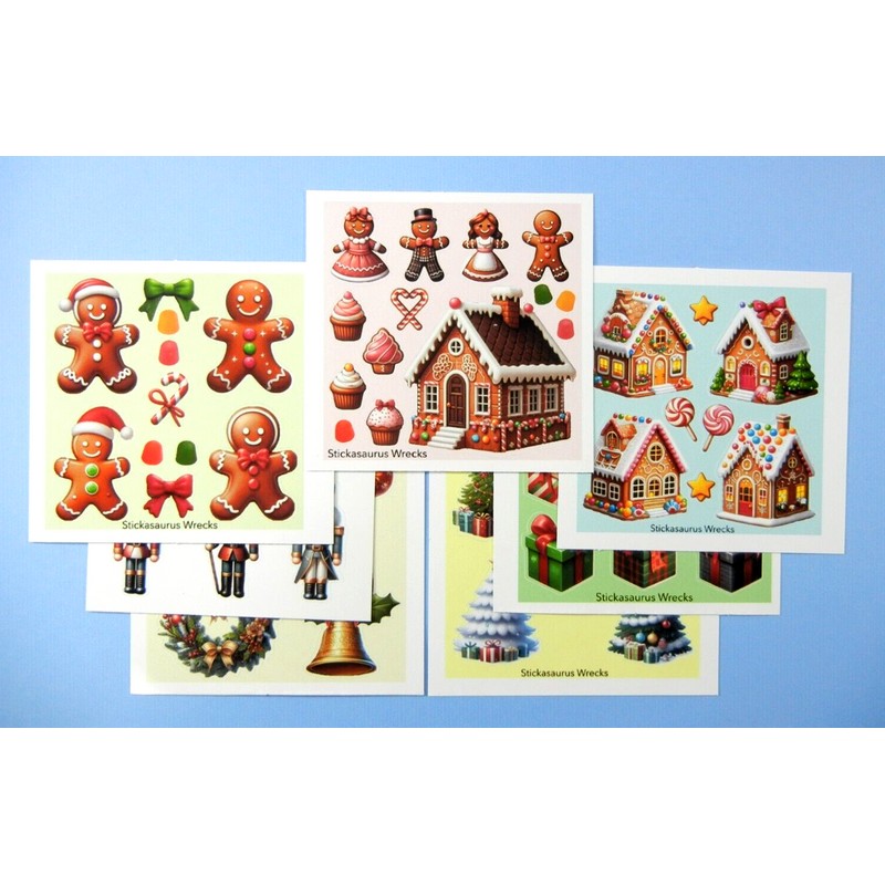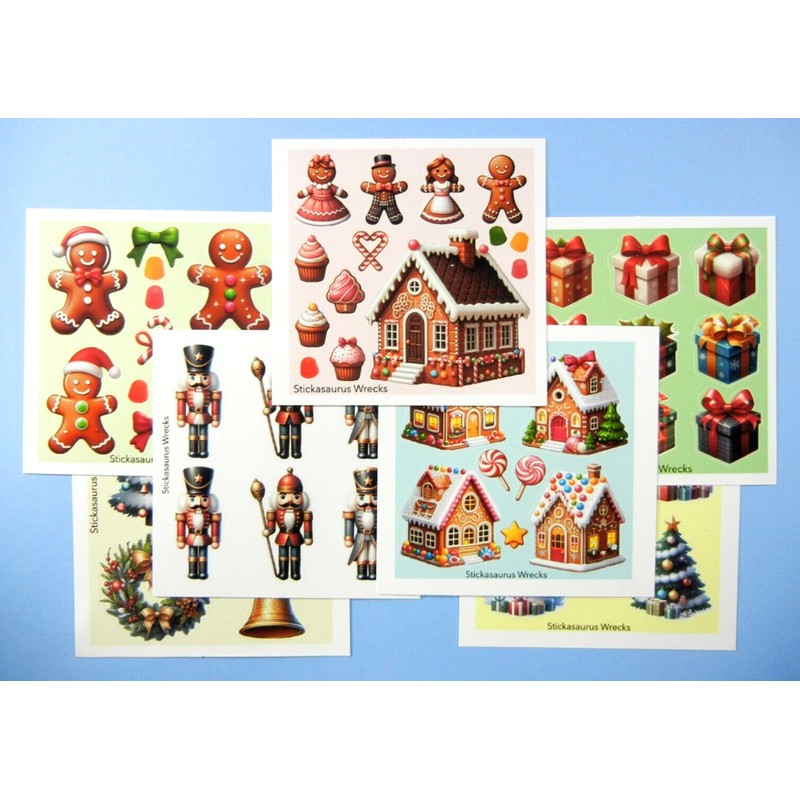 Stickasaurus Wrecks Christmas Holidays Trees Presents Gingerbread Nutcracker Mini Sticker Sheets Set