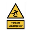 Sticker: 300 x 200 mm, Pack of 1 - Vorsicht Stolpergefahr - Warning Sign with Text (German) (Yellow/Black) - Vertical - W007 - DIN EN ISO 7010 / ASR A1.3