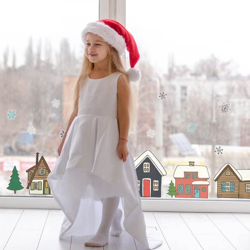 - ☃️ Christmas Window Stickers - Our Christmas Village window stickers are the perfect addition to any Winter themed window display. The pack features 4 Christmas homes, a tree and snowflakes. The homes measure 14cm x 17cm, the snowflakes are 4.5cm across.