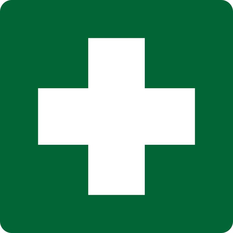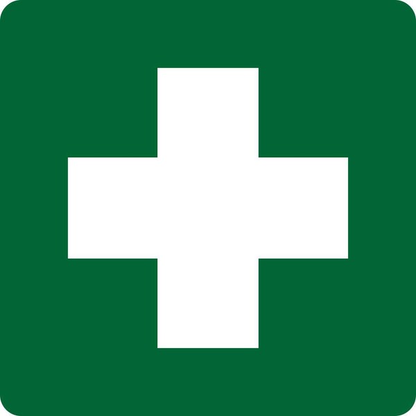 This magnet is 5 inches wide by 5 inches tall when applied. The sign has a green background; a white cross, an easily recognizable first aid symbol, appears in the foreground. If you have any special requests for Green First Aid magnets or any other type of decal, please feel free to contact us.