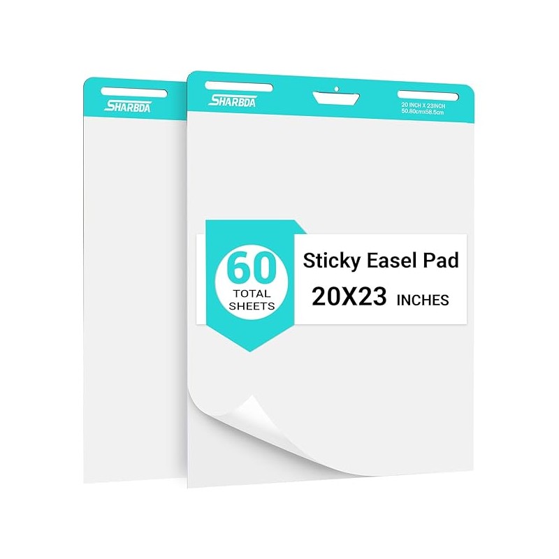 Sticky Easel Pad,20 in x 23 in,Flip Chart Paper,Sticky Chart Paper for Teachers,Self-Stick Easel Paper,Super Sticky & Bleed-Resistant, 30 Sheets/Pad, 2 Pads