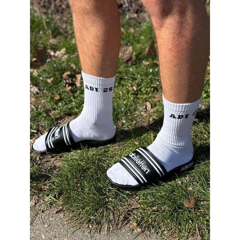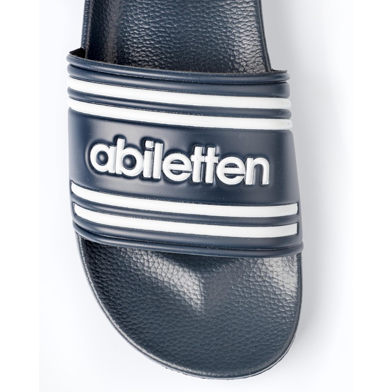 - Design: stylish bath slippers with abilette motif and side 'Abi 25' print in black or dark blue design