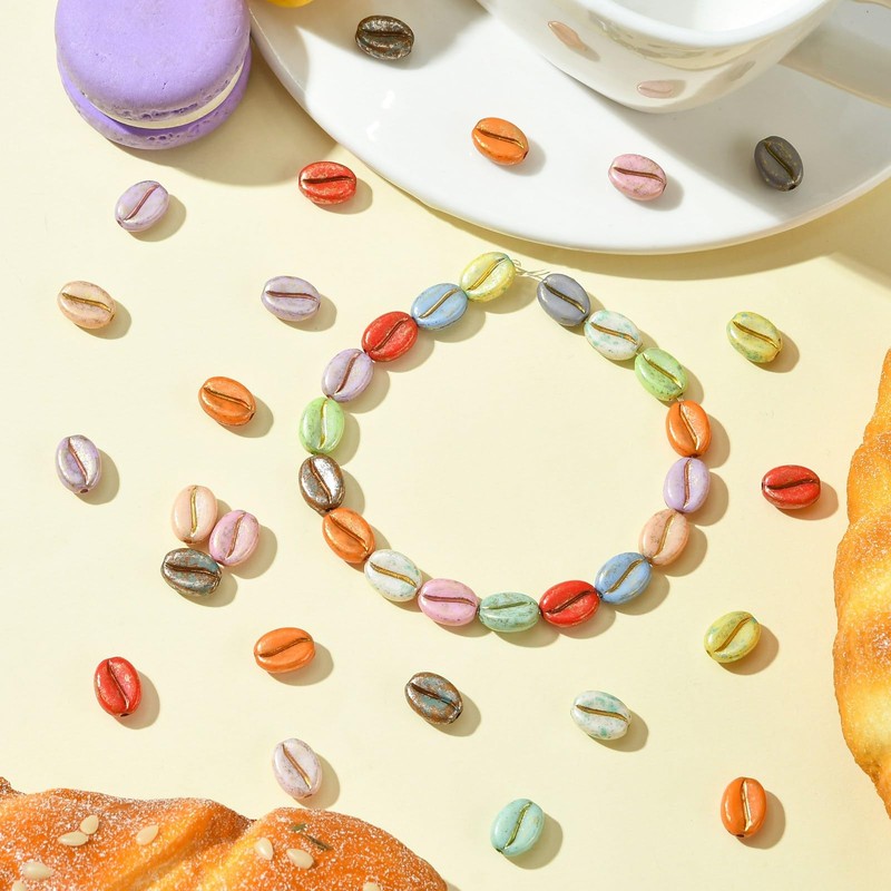 Stiesy 200 Pcs Acrylic Coffee Bean Beads Mixed Color Imitation Food Beads with 1.2mm Straight Holes Cute Loose Spacer Beads for DIY Necklace Bracelet Earring Jewellry Making Craft