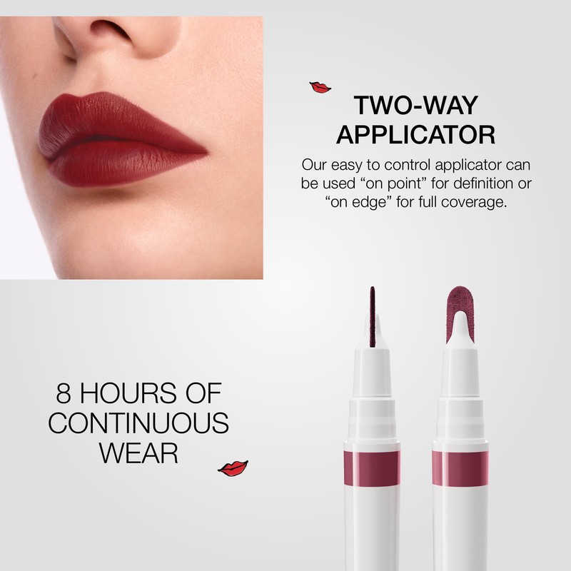 - CALLIGRAPHY STYLE TIP: Calligraphy-style pen has a unique easy-to-control two-way applicator for lining the lips and depositing lasting color. Can be used “on point” for definition or “on edge” for full coverage. This smudge-proof, vegan formula is transfer-proof and doesn't feather or bleed.
