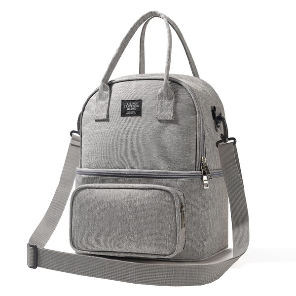 stillithou Double Deck Lunch Bag Insulated Leakproof with Backpack Straps, Lunch Bag Women Men Soft Waterproof for Work Travel Beach Picnic, Grey