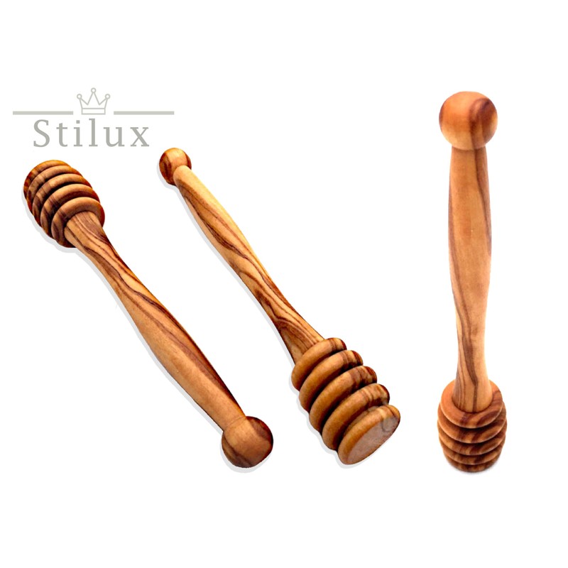 Stilux® Set of 2 Olive Wood Honey Spoons, 15 cm Honey Extractor Honey & Syrup, Honey Dipper Wooden Spoon, Drip and Spill Free Spoon, Practical Aid for Honey Lovers