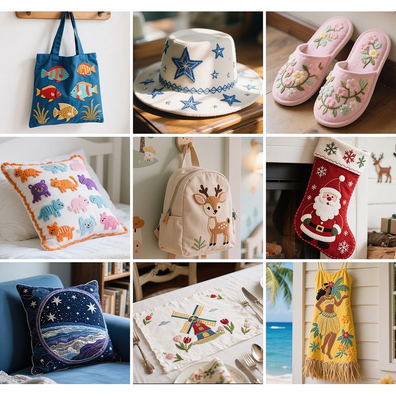 -Sews items can add embroidery details embellishment to dresses, blouses, blankets, T-shirt and more fabric. Perfect sewing projects for your beginner/professional friends and family.