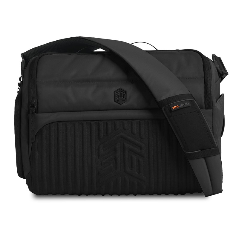 STM Dux 16L Premium Tech Messenger Bag - Carry On Travel Laptop Bag (Fits 15" Laptops) - Dual Format, Water Resistant & Luggage Passthrough - Black (stm-112-377P-01)